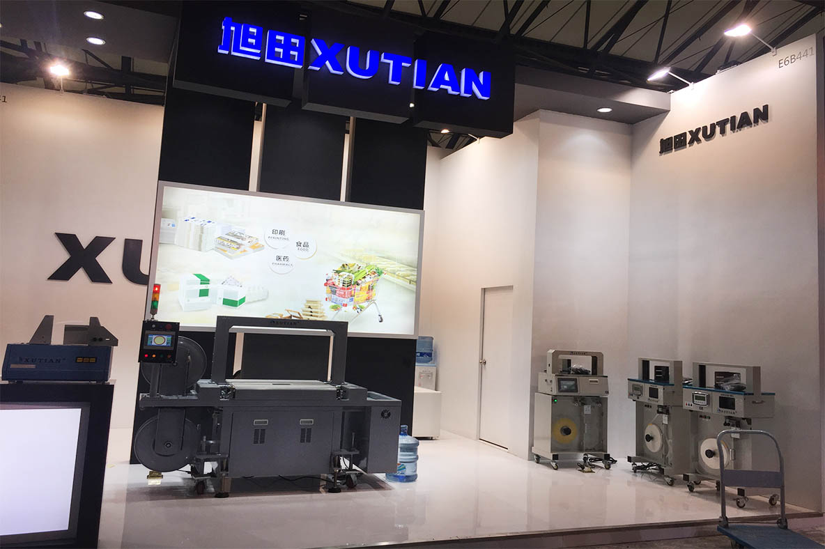 旭田包裝機械公司專注于束帶機,捆包機研發和生產的包裝機械公司,經過二十多年束帶、捆包行業技術沉淀和積累,已掌握了束帶和捆包方面的核心技術。旭田展位設計搭建圍繞著公司的產品展開,結合兩面擋板,很好的把觀眾的目光集中到展位上。